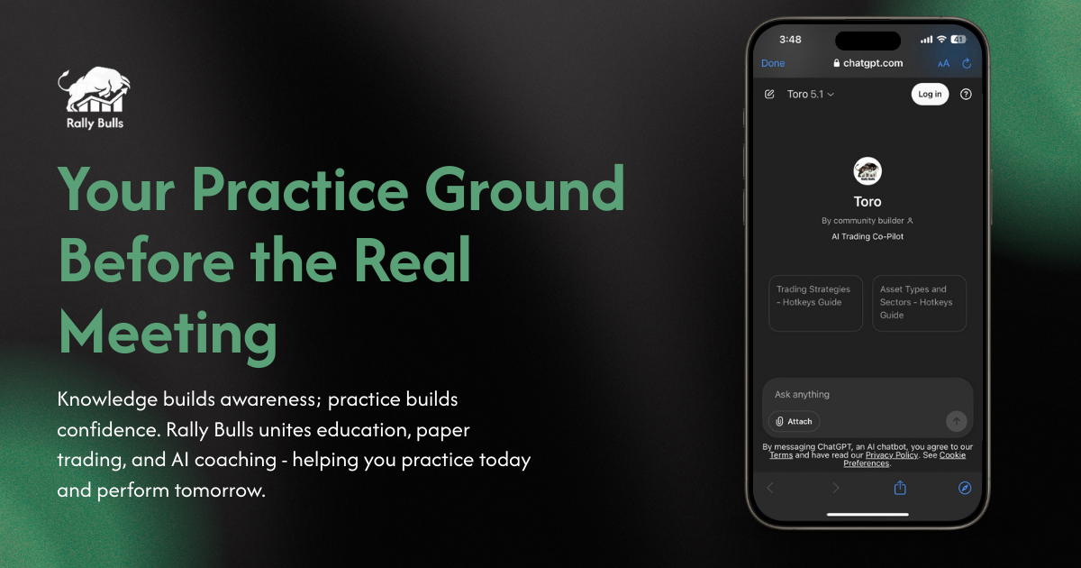 With Rally Bulls, preparation becomes practice. Through its combination of education, paper trading, and AI-powered coaching, you can build real confidence before your meeting even begins. Each session turns learning into instinct – and instinct into meaningful action.